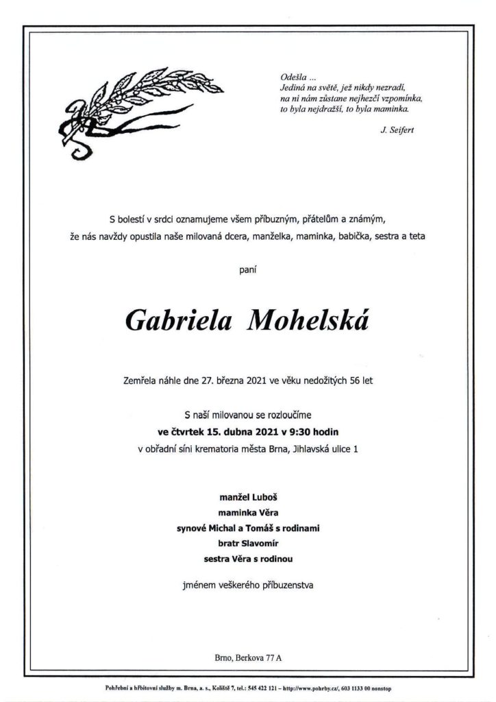Deaths Gabriela Mohelská |