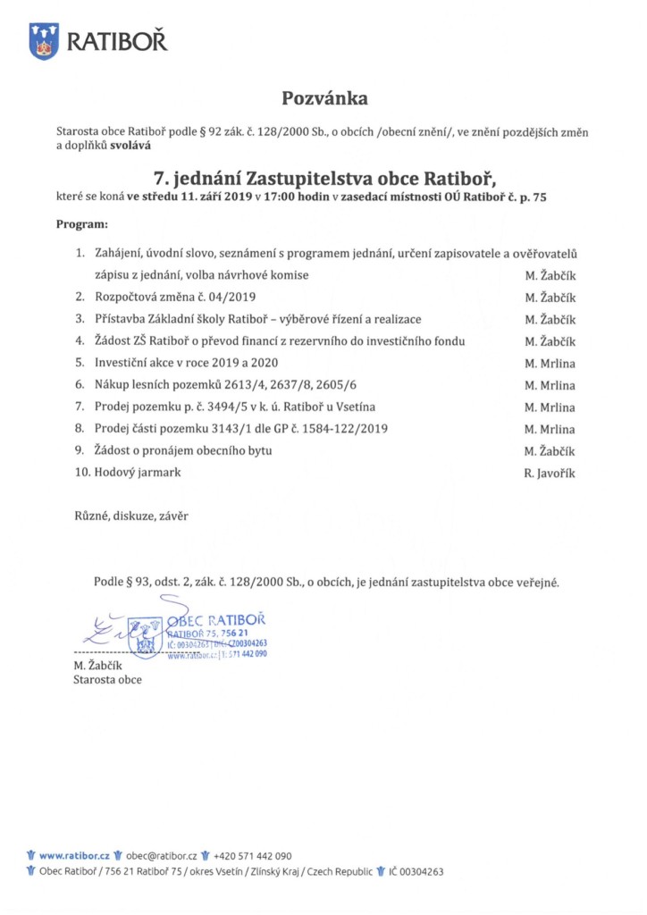 Program 7. jednání Zastupitelstva
