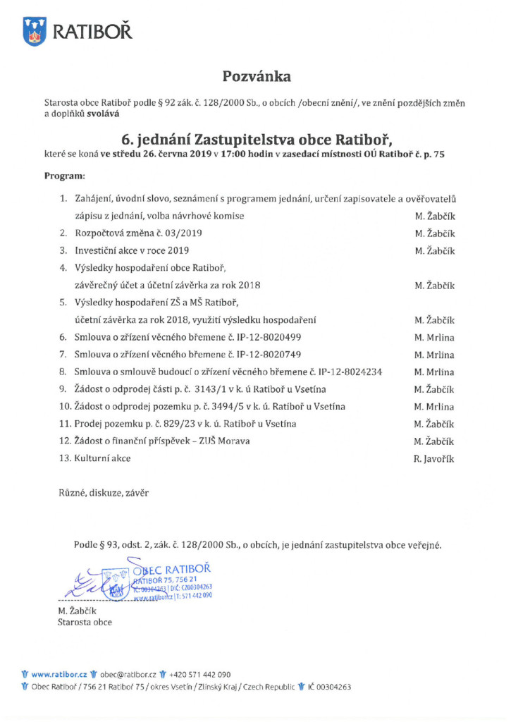 Program 6. jednání Zastupitelstva