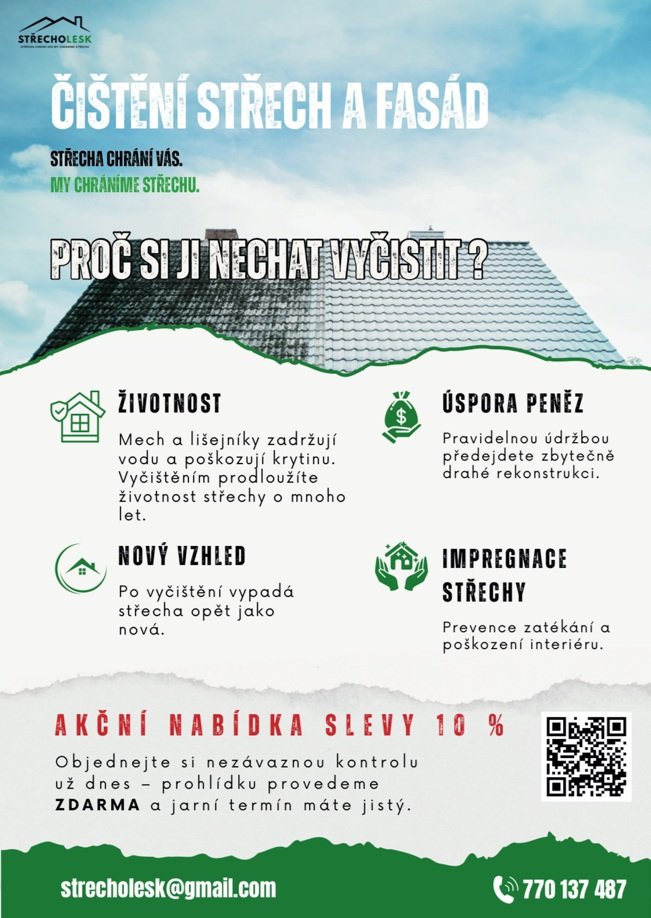 Firma Střecholesk nabízí čištění střech, fasád a dlažeb.…